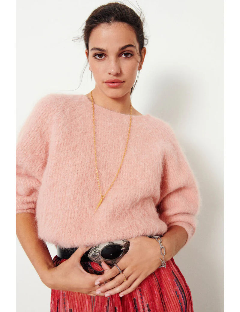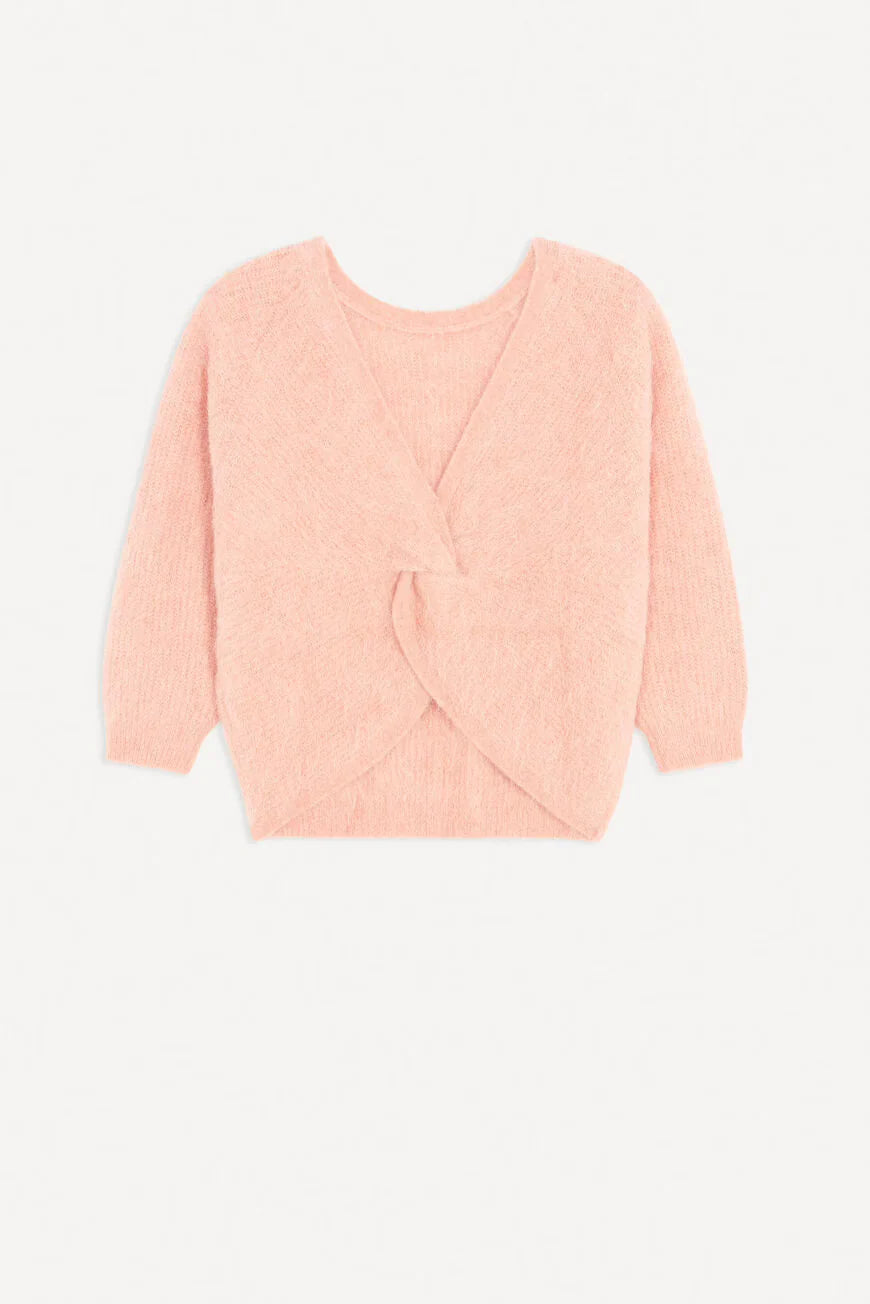 Deze losvallende, recht gesneden trui combineert comfort met een moderne, vrouwelijke uitstraling. De trui heeft lange mouwen, een ronde hals aan de voorkant en een opvallende V-hals op de rug. Dankzij de gedraaide stof aan de achterkant krijgt dit model een speelse twist, terwijl de elegante drapering zorgt voor een glamoureuze, moeitloos chique look.