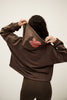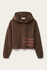 De sweat heeft een korte pasvorm met rechte snit, lange mouwen en een capuchon, afgewerkt met een opschrift op de voorkant en een logo op de capuchon voor een moderne, sportieve look.