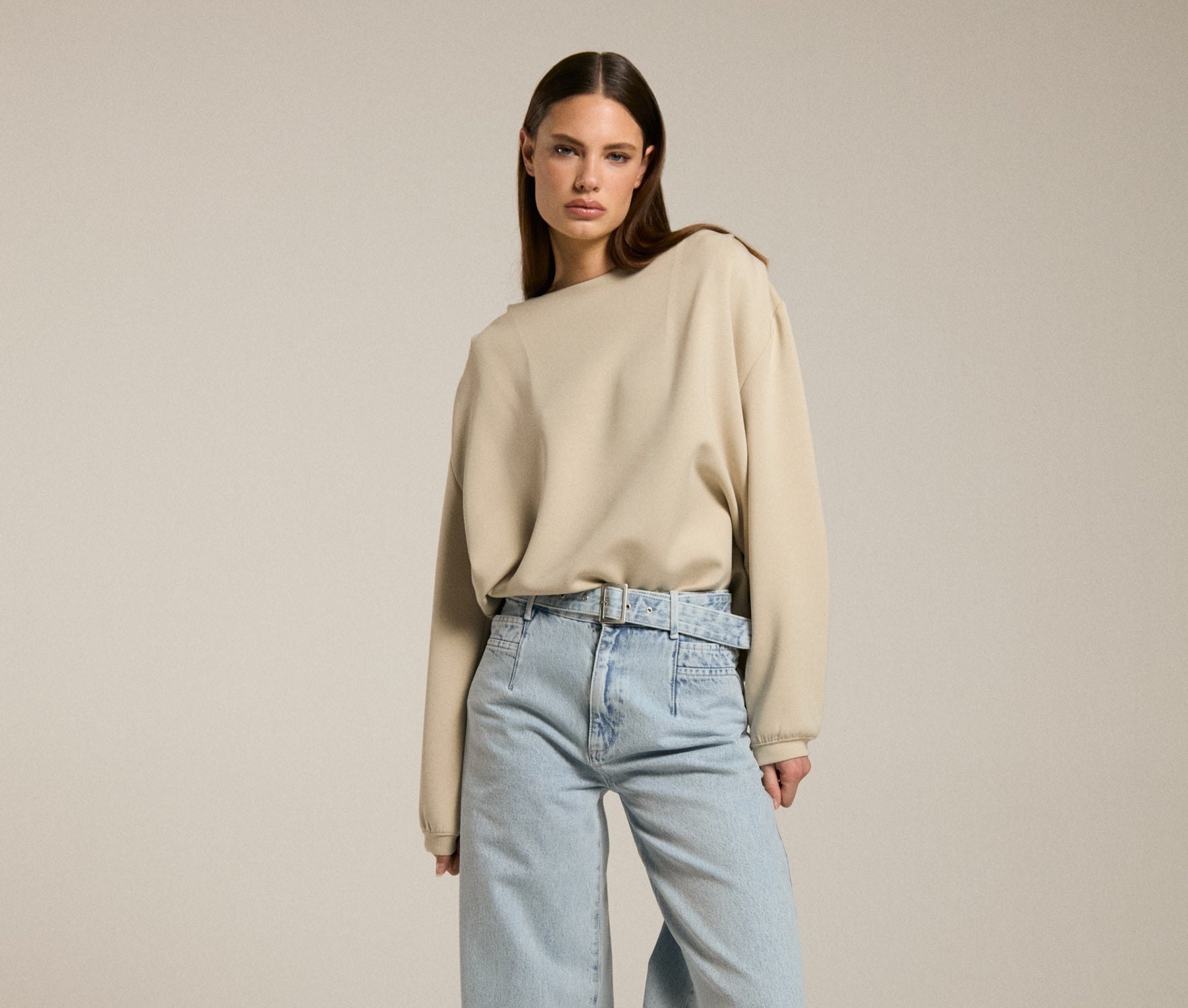 De Longsleeve Sweater met schouderplooien brengt verfijning in je dagelijkse garderobe. De subtiele plooien op de schouders en de soepele valling geven deze trui een vrouwelijke, moderne uitstraling. Gemaakt van een zijdezachte modalblend die even fijn aanvoelt als ze eruitziet.