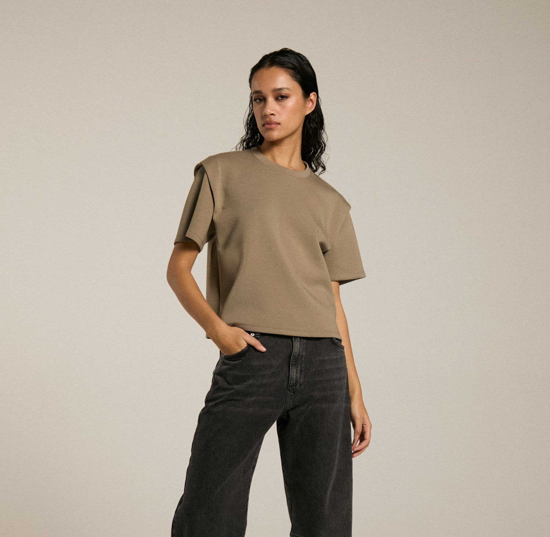 De Top in Army Green is jouw nieuwe go-to basic met een verfijnde uitstraling. Gemaakt van een premium mix van modal, polyester en elastaan, biedt deze top ademend comfort en een lichte stretch die perfect aansluit op het lichaam. Een veelzijdig item dat moeiteloos past bij elke look, van casual tot chic.
