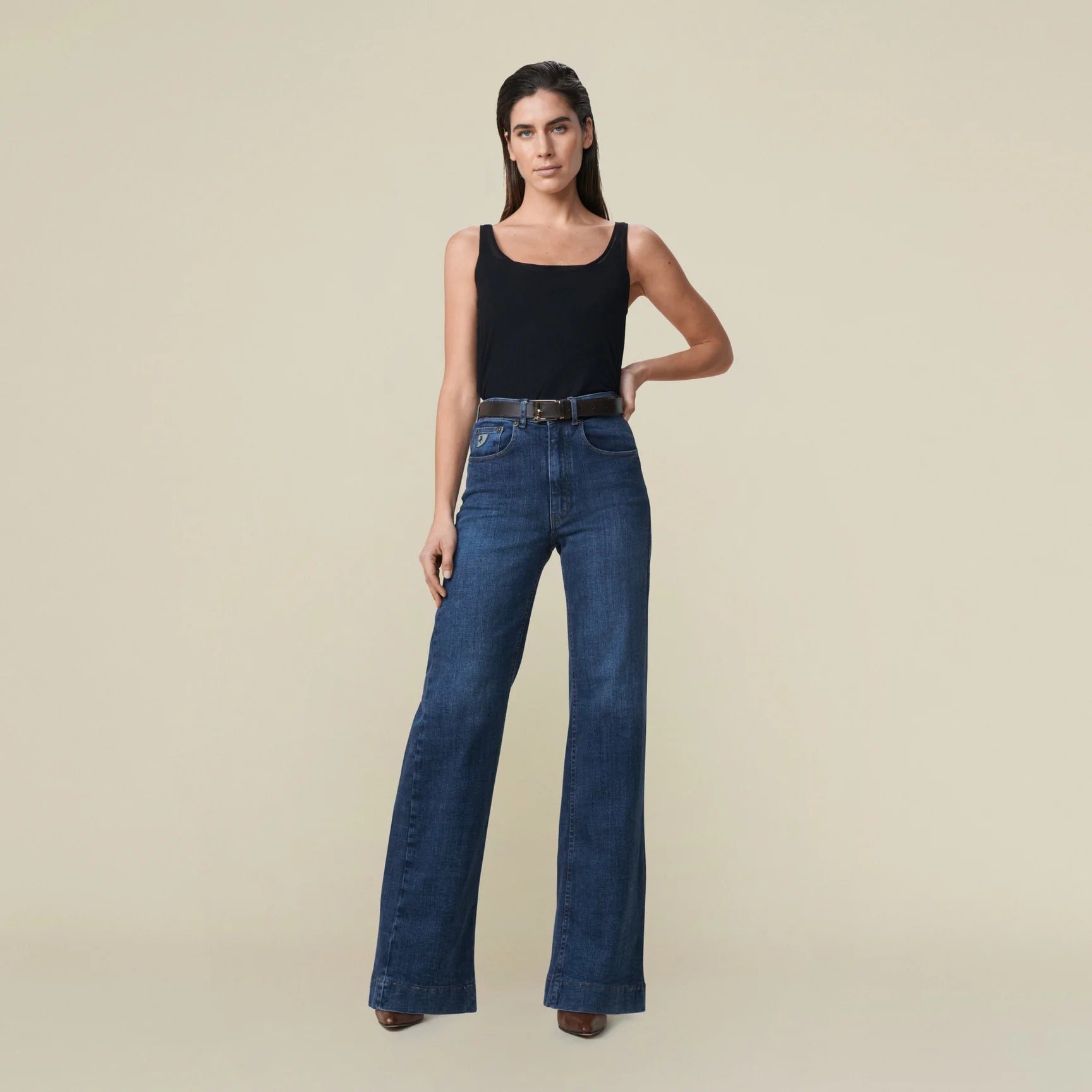 De Rosa jeans is onze hoogst getailleerde wide-leg denim, ontworpen voor een perfecte klassieke pasvorm. De hoge taille accentueert het silhouet, terwijl de wijd uitlopende pijpen zorgen voor een elegante, ontspannen look. Gemaakt van stretchstof voor optimaal comfort en bewegingsvrijheid, combineert deze jeans stijl en draagcomfort moeiteloos.