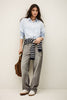 De Ba&Sh Broek Yima Gris is elegante flared trousers met een moderne high-waist snit die je outfit direct een verfijnde uitstraling geeft. Deze lange broek is vervaardigd van 100% organisch katoen en heeft dramatisch uitgewerkte wijd uitlopende pijpen met subtiel aangebrachte plooien aan de voorkant voor een flatterend silhouet. De broek is voorzien van zijzakken en een zichtbare ceintuurlus, waardoor het design zowel functioneel als stijlvol is. Dankzij de zachte grijstint en het tijdloze model is deze pantalon ideaal te combineren met een blouse voor een chic ensemble of met een basic tee voor een relaxte, maar modieuze look.