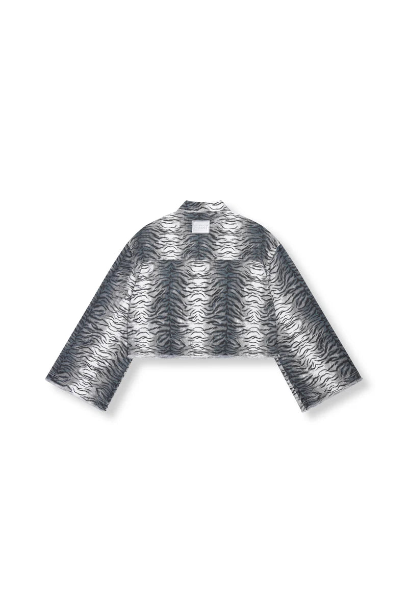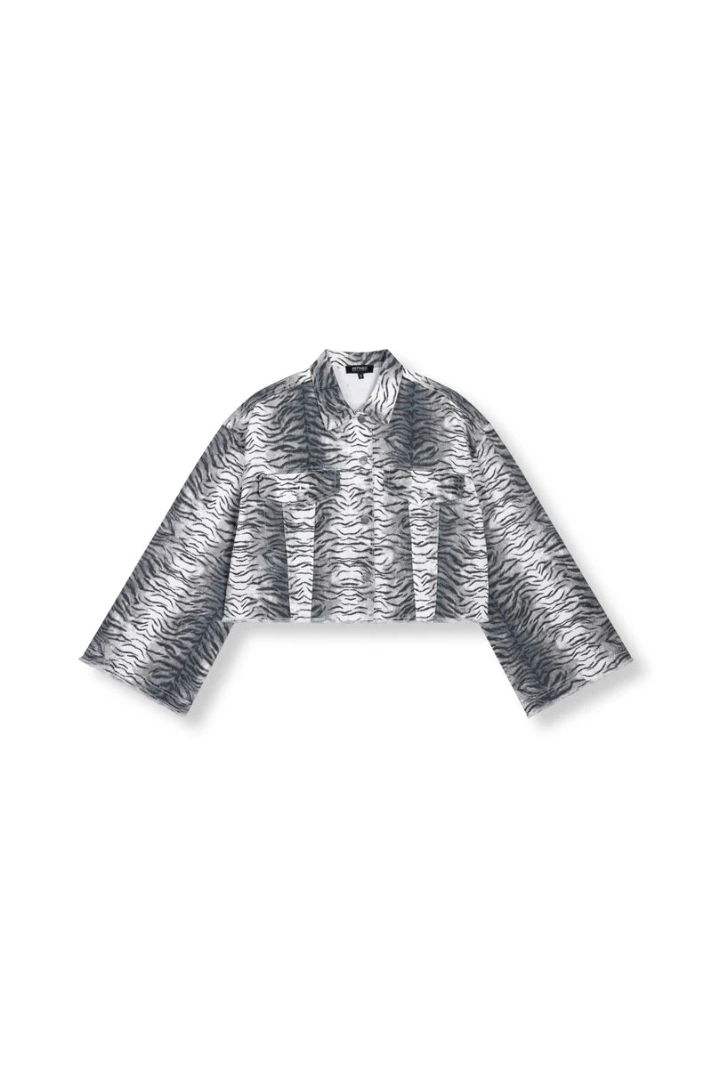 De Refined Department Animal Print Cropped Denim Jacket is een opvallend en modern jasje met een oversized pasvorm dat moeiteloos een statement maakt in je garderobe. Gemaakt van 100% katoen denim met een all-over animal print, combineert het jasje comfort met een eigentijdse, fashion-forward uitstraling. Op de achterkant prijkt het herkenbare RFND-logo, wat het design een subtiele, luxe touch geeft. Draag dit jasje samen met de ELMA jeans voor een complete, gecoördineerde outfit, of style het los met andere basics voor een speelse en stijlvolle look.