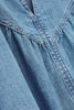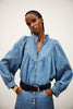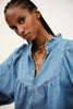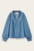 Creëer een stijlvolle, effortless look met deze denim blouse in een moderne, vrouwelijke snit. De blouse heeft een wijd, luchtig silhouet dat elegant om het lichaam valt, terwijl de lange pofmouwen zorgen voor een subtiele statement touch. De V-halslijn en verfijnde ruffle-details geven het denim een romantische twist, perfect in balans gebracht door de zachte plooien die het ontwerp extra diepte en beweging geven.
