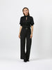 De Luca broek in zwart is een tijdloze, elegante pantalon uitgevoerd in polyester crêpe met een satijnen binnenkant die zorgt voor een luxe, soepel vallende uitstraling. De oversized broekspijpen met een subtiele vouw aan de voorzijde geven het ontwerp een moderne, krachtige look, terwijl de hoge taille het silhouet mooi accentueert en een comfortabele, nauwsluitende pasvorm biedt. Perfect te stylen met een elegante top en puntlaarsjes voor een sophisticated outfit die moeiteloos van dag naar avond gaat.