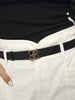 Investeer in de Motif riem, een stijlvolle elastische tape-riem met ons goudkleurige logo als verfijnde blikvanger. Het stretch polyester grosgrain materiaal zorgt voor een comfortabele pasvorm, terwijl de verstelbare maat en de enkele lus het dragen moeiteloos maken. De gouden gesp voegt een luxueuze touch toe en maakt deze riem ideaal te combineren met zwarte items of andere minimalistische looks voor een moderne, boutique-chic uitstraling.